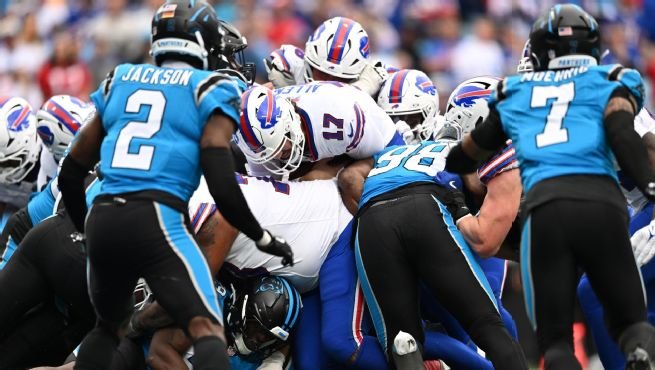 Two more touchdowns extended Buffalo’s lead to 24-3 at halftime, leaving Carolina searching for answers.