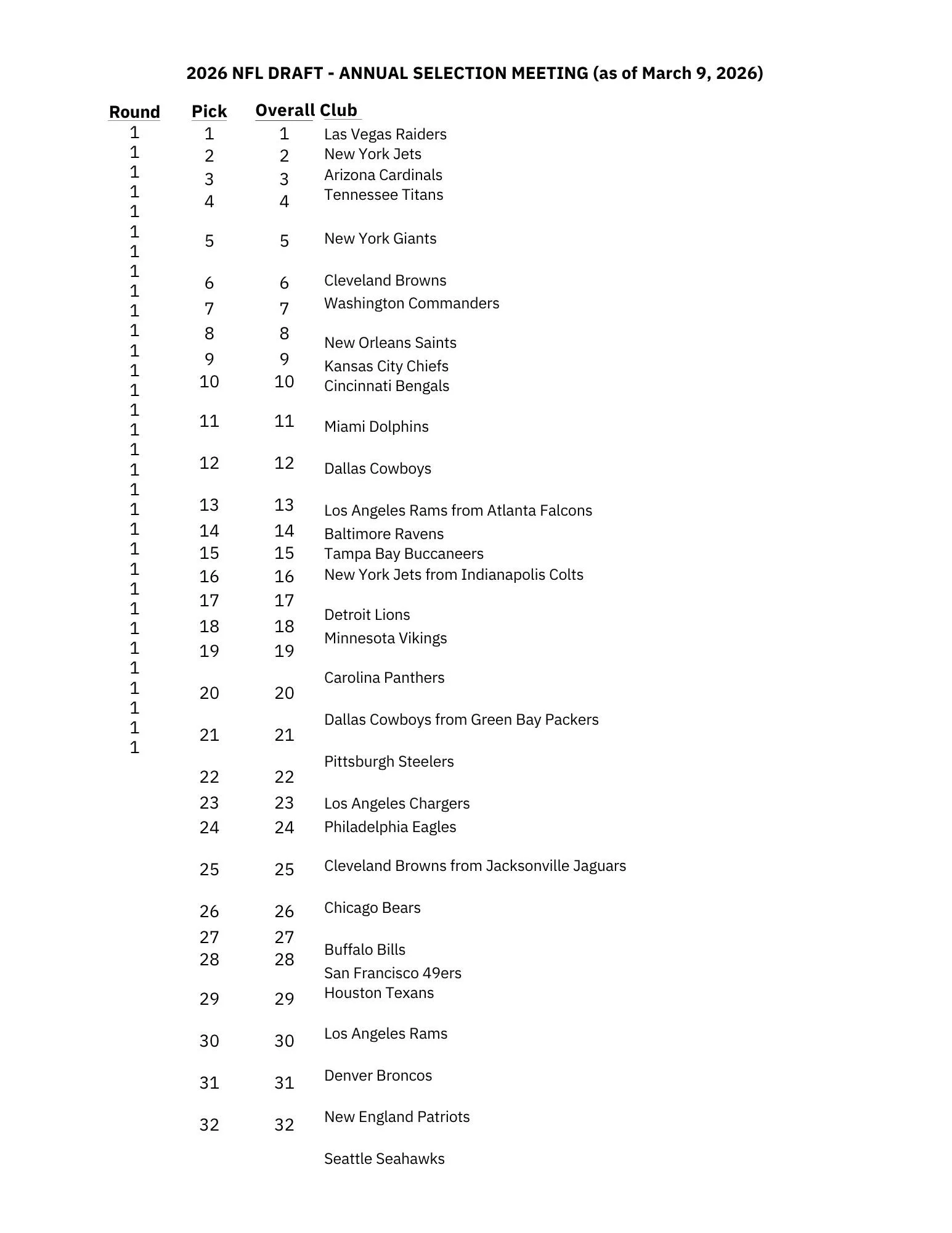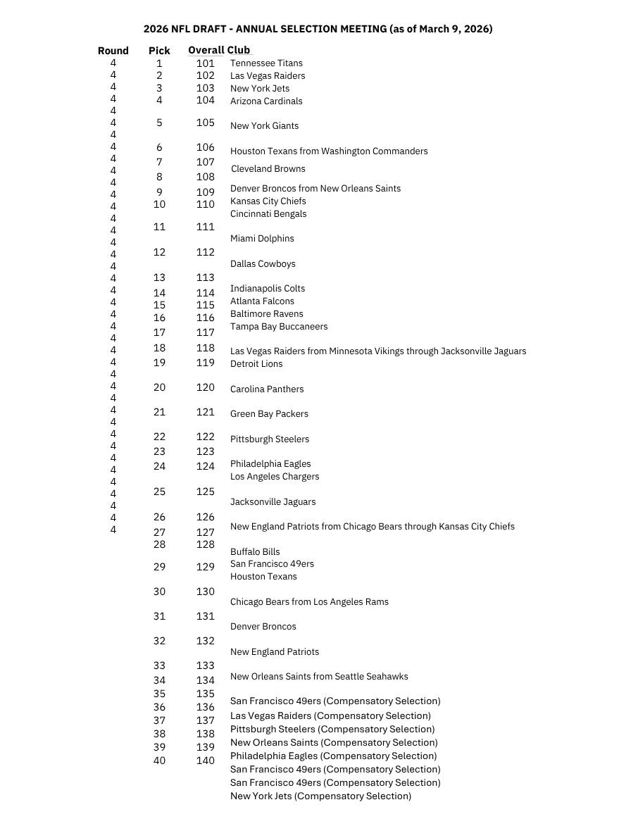 NFL Announces Full NFL Draft Order for 2026 NFLSports News Mar 19 Written By Karma Kay NFLPress ReleaseNFL NewsSports News Karma Kay Contributing Writer for Pretty Girls Media, Beat Reporter and Radio Personality